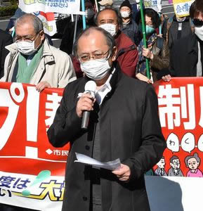 続いて、武内更一弁護士(憲法と人権の日弁連をめざす会代表)がデモの重要な意義を語り(要旨別掲)、コロナによる困難をはねとばして意気高くデモすることを呼びかけた。