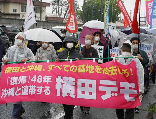 (写真 改憲・戦争阻止!大行進三多摩実行委員会が呼びかけた5月16日の横田基地抗議デモには70人が集まった【福生市】)