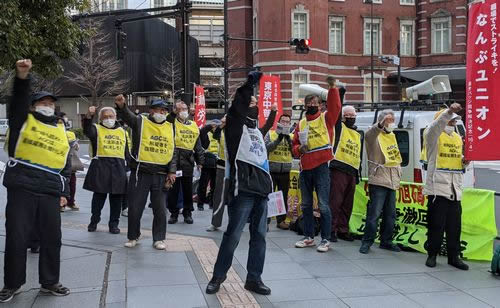 追い詰められたAGC本社は、ついに昨年12月に和解協議を求めてきた。この展開に旭非正規職支会支援共闘会議のAGC本社を攻める闘いに力が入った。