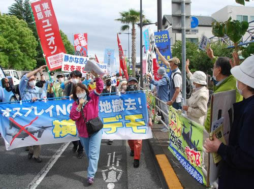 横田基地へ100人超がデモ