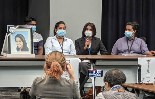 19日の院内集会で二女のワヨミさんは「治療をしていたら今もお姉さんは生きていた。ビデオを見るまで帰れません」と語り、三女のポールニマさんも「二度とお姉さんのようなことが起きないように皆さんにお願いしたい」と訴えた。