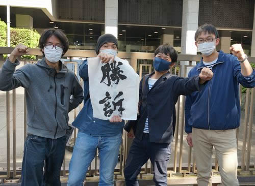 裁判長が判決の主文を読み上げると法廷は歓喜に包まれました。長いあいだ傍聴に参加し続けてくれた仲間たちに支えられ、原告・弁護団は闘い続けることができました。この団結が勝利を引き寄せたのです! 森川文人弁護団長をはじめ弁護団の皆さんの奮闘に、改めて御礼申し上げます。