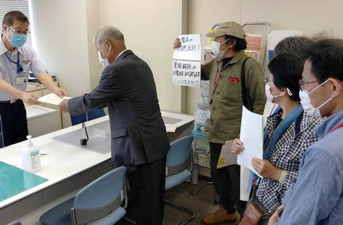 申し入れでは、今年3月6日に名古屋入管に収容されていたスリランカ人女性ウィシュマさんが殺されたことを弾劾し、「日本帝国主義の植民地支配政策として、『違法』『不法』などと排外主義を煽(あお)り外国人労働者を支配する入管法こそ、廃止されるべきです」「収容者全員を即時釈放し、入管法改悪案の廃案を求めます」と訴えた。