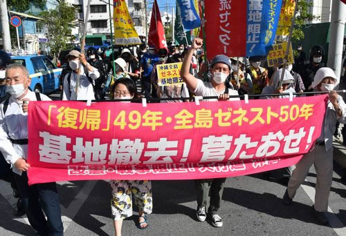 沖縄といえば星野文昭さんです。星野さんは、核も基地もない平和な沖縄を求めて、1971年、渋谷で沖縄返還協定批准阻止闘争を闘いました。でっち上げの「殺人罪」で無期懲役刑を科され、獄中44年を強いられました。私は「すべての人間が人間らしく生きられなければ自分も人間らしく生きることができない。すべての人間が人間らしく生きられるよう、自分の生を貫きたい」という星野文昭さんの魂を引き継いで、戦争・改憲に突き進もうとしている菅政権を打倒しようと闘っています。沖縄の星野集会でも、星野暁子さんは「文昭の魂を引き継いでやっていきたい」と言っていました。