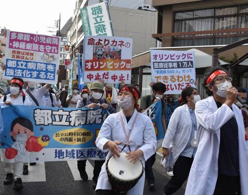 「五輪は中止だ」「医療労働者を動員するな」「多摩総、小児、神経病院なくすな」のデモコールが響きわたりました。