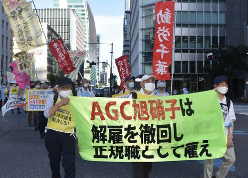 7月16日午後、旭非正規職支会支援共闘会議は、AGC本社を攻める街頭宣伝と丸の内デモを闘った。