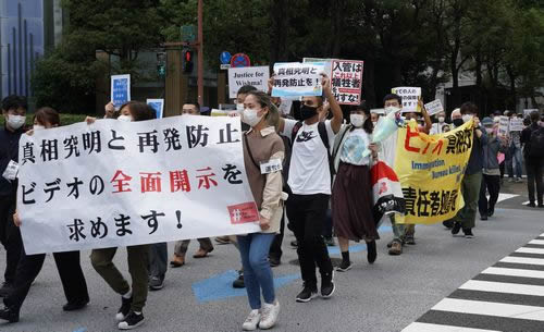 東京では午後3時、日比谷公園から「真相究明と再発防止/ビデオの全面開示を求めます」という要求を掲げたサイレントデモが、法務省に向けて出発した。