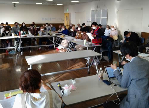 地域の作業所の仲間は、障がい者グループホームの再編を政府が考えていると指摘し、本来の共同生活の拠点から金もうけの手段への転換に反対する署名運動を提案しました。