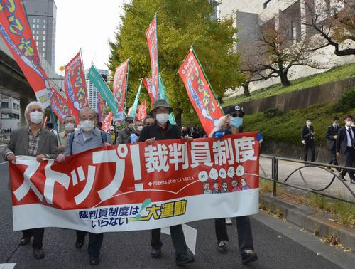 11月19日、裁判員制度の廃止を求めるデモが東京で闘われた。呼びかけは「憲法と人権の日弁連をめざす会」と「裁判員制度はいらない!大運動」。