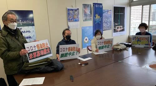 1月26日、改憲・戦争阻止!大行進横須賀と神奈川労組交流センター・三浦半島教労部会は、横須賀市基地政策課および在日米軍司令官に対し「コロナから横須賀市民の生命と暮しを守るための抗議要請書」手交申し入れを行いました。