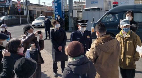 基地に向かってシュプレヒコールを上げ、申し入れに移った。航空自衛隊横田基地からは管理部の職員2人が、防衛局では職員1人が出て来て申入書を受け取った。申入書では、「オミクロン株の日本での感染拡大の震源地は米軍基地だ。地位協定により、検疫の対象外となっているからだ」「岸田政権は、中国侵略戦争とそのための改憲を進めるな! 辺野古新基地建設をやめろ! 沖縄・南西諸島の自衛隊基地・ミサイル部隊を即刻撤去せよ! 軍事費2倍化ではなく、医療・自治体に予算を回せ!」と訴えている。これは全住民の声だ。沖縄と連帯し、米日帝の中国侵略戦争を止めよう。