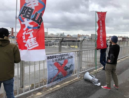 2月10日朝、改憲・戦争阻止!大行進沖縄は、米軍那覇港湾施設(那覇軍港)での米軍訓練に対する緊急の抗議行動を闘いました。