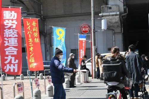 福岡では2月27日、改憲・戦争阻止!大行進九州の仲間がJR博多駅近くの音羽公園に結集して戦争反対の抗議行動を行った。