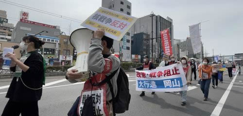 3月6日、岡山市内でウクライナ反戦!春闘勝利!岡山集会を行った。集会に先立ち、陸上自衛隊日本原駐屯地へ「米海兵隊の演習中止せよ」の申し入れを行い、さらにJR岡山駅構内を貫くデモ行進を行った。