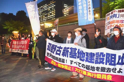4月28日、改憲・戦争阻止!大行進と全学連の主催で東京・市谷の防衛省へデモと抗議行動が行われました。