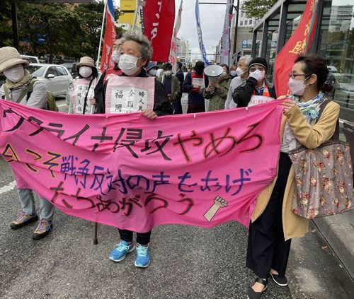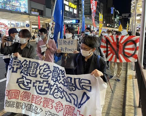 電飾を施したサウンドカーを先頭にデモに出発。高校生や市民が何人も飛び入りで参加するなど、これまでとはけた違いの反響に驚きました。ウクライナ戦争が始まって以降の人々の政治意識の高まりをひしひしと感じました。