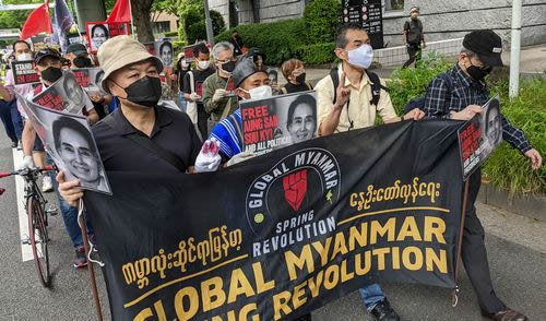 5月8日、ミャンマー国軍のクーデターと闘う在日ミャンマー人が呼びかけた新宿デモが闘われた。「ミャンマー・グローバル・スプリング・レボリューション」の世界共通の横断幕を掲げ、世界12カ国同時行動として取り組まれた。