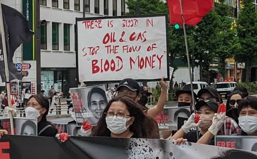 血塗られた金の流れ止めろ 新宿 ミャンマー人民と共にデモ