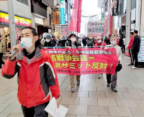 サミットは核戦争会議だ 広島 開催反対訴え申し入れ・デモ