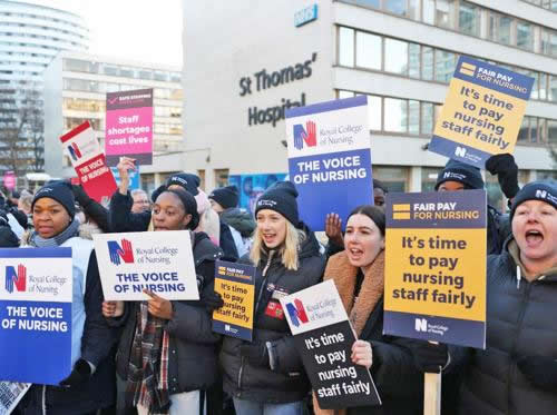 イギリスで12月15、20日の2日間、労働組合の王立看護協会(RCN)に所属する看護師約10万人がイングランド、ウェールズ、北アイルランドでインフレ率プラス5%の賃上げを求めて史上初のストライキに立ち上がった。1948年につくられた国営医療制度(国民保健サービス=NHS)史上でも最大規模の看護師ストだ。政府は交渉に応じていないのでRCNは1月18、19日にもイングランドでストに入る予定だ。