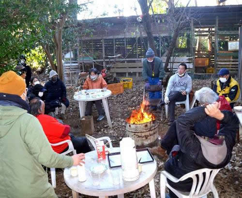 農地強奪の強制執行攻撃との緊迫した「15日間決戦」の中で1月29日、1月では2度目の天神峰カフェが開かれた。千葉・東京・神奈川などの労働者、座り込み・泊まり込み参加者、現地闘争本部員、全学連現地行動隊、三里塚支援連絡会議など十数人が参加。たき火を囲み熱いコーヒーを飲みながら交流し、終了後には機動隊宿舎周囲の現地踏査も行われた。
