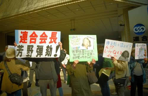 芳野会長は労働者の敵 連合会館前で弾劾文つきつけ