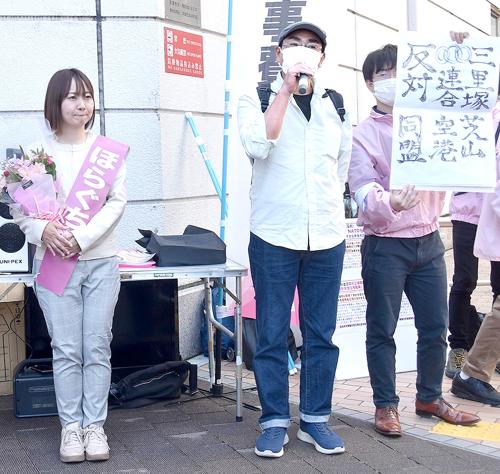 ほらぐち候補の第一声 戦争とめ、社会変える