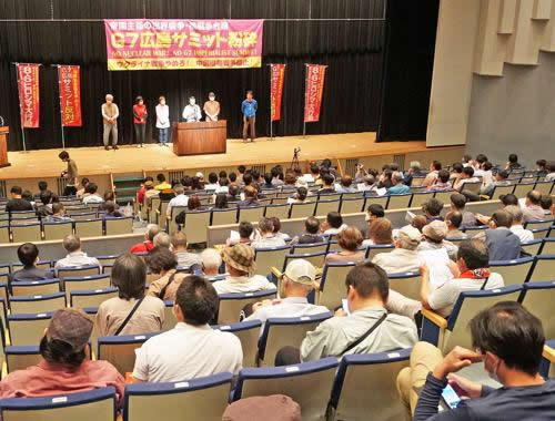明日帰りましたら、沖縄で3千人を目標とする大集会を予定しています。そこで、私が広島で見たことをみなさんに伝えたいと思っています。戦争を止める闘い、民衆の沈黙を打ち破る明かりを掲げる行動を、ともに行っていきましょう。
