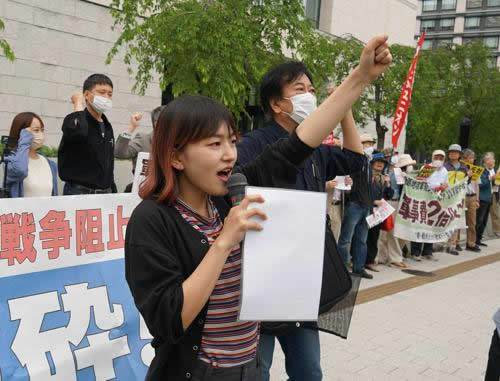 5月26日、改憲・戦争阻止!大行進東京の主催で「戦争国会粉砕!岸田打倒」の国会闘争が50人の結集で意気高く闘われた。G7広島サミット粉砕闘争の先頭で闘った全学連が、その熱気と高揚感を持ち込んで闘いをリードした。杉並区の自衛官募集業務に反対して闘う洞口朋子杉並区議会議員を始め、闘う人々が次々と発言し、入管法改悪など反動諸法案の粉砕へ全力で闘うことを誓い合った。