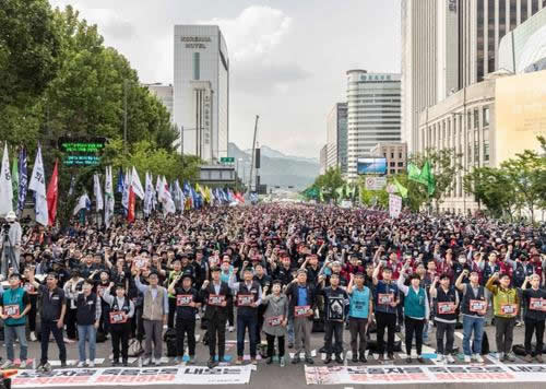 また同日、金属労組は各現場で昼夜4時間以上のストライキに突入し、ソウルを含め全国12カ所でゼネスト大会を開催した。