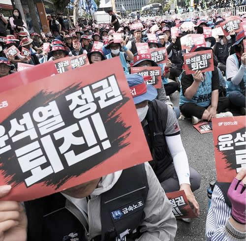 民主労総の組合員たちはこうした弾圧に一歩も引かずに堂々と集会・デモ・ストを貫徹した。ヤンギョンス委員長は総力闘争大会で「チョンドファン、イミョンバク、パククネ政権に引けを取らない極悪政権」とユン政権を弾劾し「民主労総が、労働者が希望になって闘う」と宣言した。