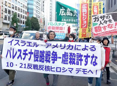 東京では、新宿駅東口アルタ前広場でアピール集会と新宿の街を一周するデモが行われた。大行進呼びかけ人の高山俊吉弁護士は「反戦の声で新宿を騒乱の街にしよう!」と訴え、全学連の学生は前日のイスラエル大使館抗議行動で不当逮捕された学生の即時奪還へ共に闘うことをアピール。動労千葉の川崎昌浩執行委員は「パレスチナ人民がイスラエルに抵抗し武装蜂起することは当然の権利だ。パレスチナ人民と連帯し、労働者の団結した力で戦争を止めよう」と訴え、11・19集会への大結集を呼びかけた。