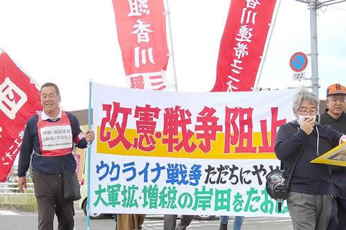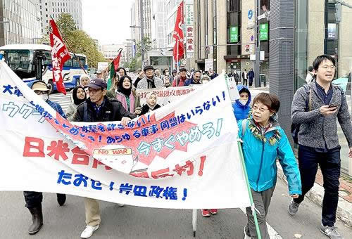 福岡では、中央区警固公園から天神の繁華街に向かうデモが行われた。ガザ侵攻、ウクライナ戦争、中国侵略戦争、日米合同軍事演習レゾリュート・ドラゴン23への絶対反対のコールを響かせ、デモ後には反戦集会もかちとられた。