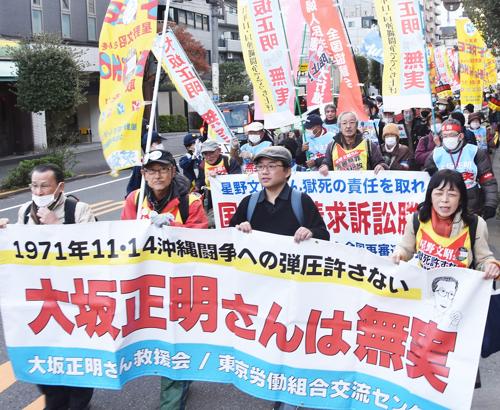 沖縄返還協定批准阻止の1971年11・14渋谷暴動闘争で「殺人罪」をでっち上げられた大坂正明同志の裁判の判決公判が5日後に迫った12月17日、「大坂さん無罪奪還・星野国賠勝利全国集会」が、東京・新宿区内で開かれ300人が集まった。