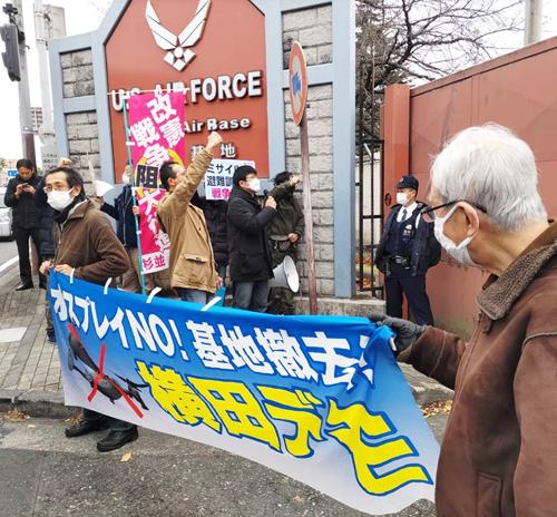 (写真 米軍横田基地前で抗議【12月15日 福生市】)