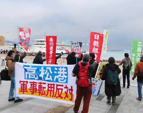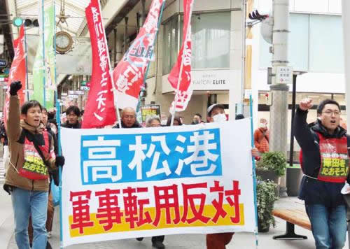 港の軍事転用やめろ 高松 労組先頭に反戦デモ