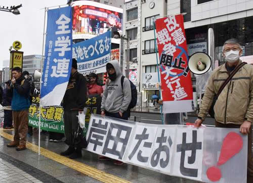 (写真 ガザ大虐殺弾劾、辺野古新基地建設阻止、ウクライナ反戦を訴えて労働者・学生がリレーアピール【1月21日 東京都新宿区】)