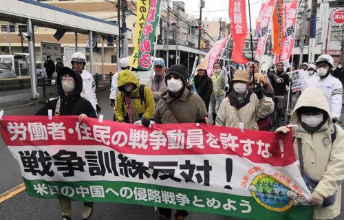 自衛隊、街頭制圧し訓練 大行進神奈川が実力抗議闘争