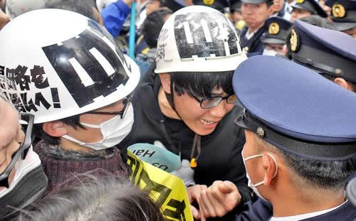 日ウ戦争会議を実力弾劾 経団連会館に肉薄 全学連先頭に