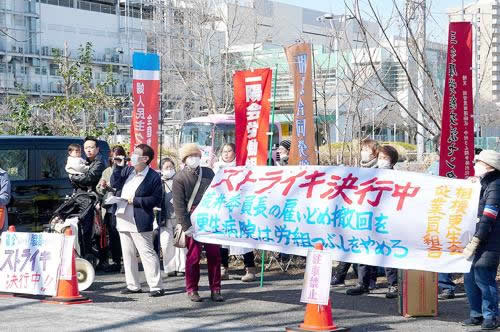 3月14日、神奈川県相模原市にある総合相模更生病院で相模更生会従業員組合がストライキを決行しました。なんと病院は、荒井素子委員長を辞めさせるために、今年度だけ、看護助手だけ、定年後再雇用1年以上の職員だけ一律に雇い止めを強行したのです。明らかな不当労働行為です。