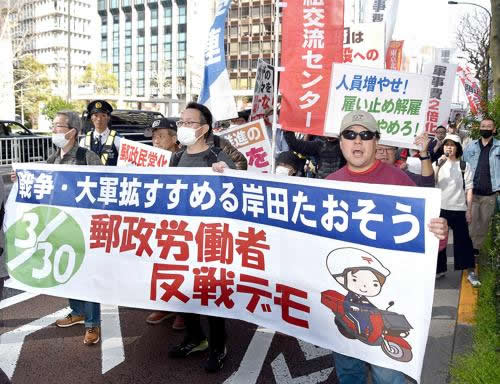 郵政労働者が反戦デモ 〝この闘いを待っていた〟 闘う労組復権し戦争阻止を