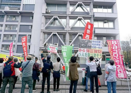 8・6弾圧は、核武装・中国侵略戦争を遂行するためにヒロシマ・ナガサキの反戦反核闘争をなきものにしようとする攻撃だ。そのために日本帝国主義・国家権力は5人が「市の職員に暴行を加えた」という容疑をでっち上げ、暴処法という戦前から労働運動弾圧に使われてきた悪法を持ち出して逮捕・起訴を強行したのだ。