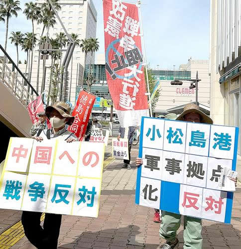 4月13日、改憲・戦争阻止!大行進徳島の呼びかけで、徳島市での反戦デモを反戦春闘の一環として闘いました。直前に岸田首相の訪米と、自衛隊と米軍の指揮統制連携強化のニュースがあり、戦争反対の声がストレートに伝わって学生や家族連れ、労働者の注目を集めました。自国政府の侵略戦争に反対するデモ隊の登場は、街の空気を労働者階級の意識にグッと引き付けました。