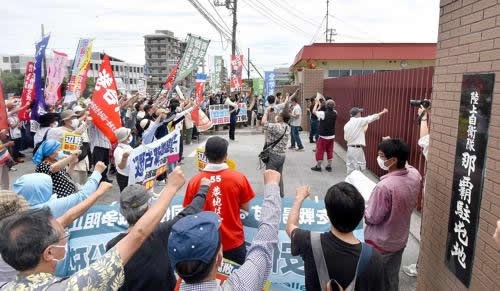 5月20日、辺野古現地での座り込み闘争に続き、改憲・戦争阻止!大行進沖縄と全国の仲間が陸上自衛隊那覇駐屯地に対し「①陸自那覇駐屯地第15旅団の師団への改編を直ちに中止すること、②琉球弧、沖縄の軍事要塞(ようさい)化を中止すること、③自衛隊は侵略の銃をとるな。中国侵略戦争への参加を拒否しよう。労働者民衆と共に侵略戦争反対の声を上げよう」の3点を申し入れた。
