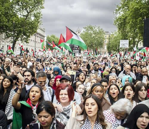 (写真 都心をパレスチナ連帯一色に染め上げたデモ【5月18日 ロンドン】)