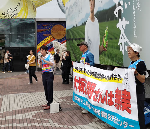 民主化闘争を闘い「亡命」中だという香港出身の青年は、「政治弾圧は許せない。香港での悔しさが再びこみあげる。日本の闘いを仲間に伝え、討論したい」と資料を持ち帰った。「授業で冤罪(えんざい)について習った」と署名に応じる学生、「沖縄基地撤去」の演説に反応して駆け寄り署名した労働者。絶対反戦を貫く大坂さんの闘いが、新たな出会いと青年の決起を生み出している。