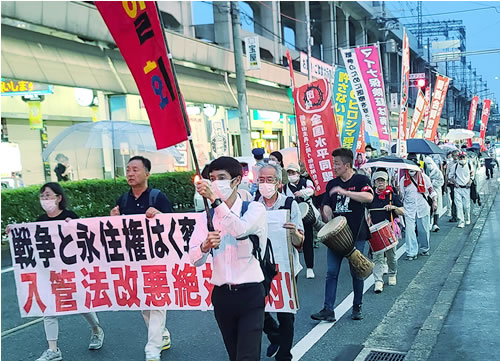 6月15日、大阪で「戦争と永住権剥奪(はくだつ)の入管法改悪許さない! 布施デモ」を行った。