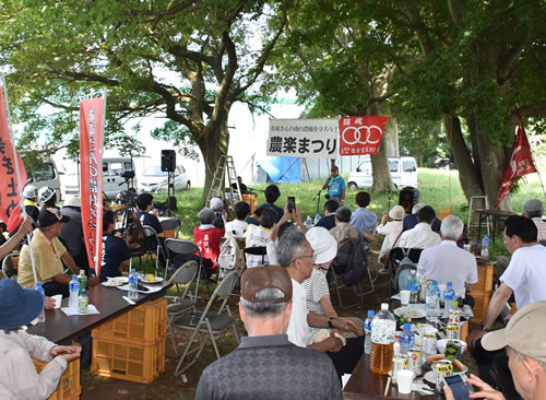 三里塚芝山連合空港反対同盟が主催する「農楽まつり」が猛暑の中、7月7日に開かれた。首都圏を中心に180人が参加した。
