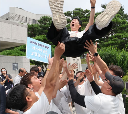 7月11日、旭非正規職支会(民主労総金属労組)はついに韓国大法院(最高裁)で勝利判決を勝ち取った。判決直後にチャホノ支会長は、「工場に戻って、10年前に始めた労組活動をもう一度始める。今や第1幕が終わり、堂々と現場で第2幕を開く」と意気揚々と宣言した。