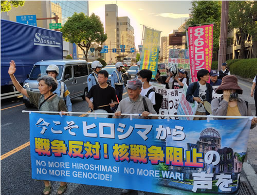 広島市役所を包囲しデモ 週刊『前進』04頁(3363号02面02)(2024/09/23) 広島市役所を包囲しデモ 8・6ヒロシマ大行動実行委員会が9月11日夕方、翌12日から始まる広島市議会での新たな反戦反核運動への弾圧策動を打ち破るため、広島市役所包囲デモを行った。初めて市役所包囲デモに参加する仲間も加わり、暴処法弾圧で勾留中の5人とも団結して意気高く行進した。 Tweet 前の記事 次の記事